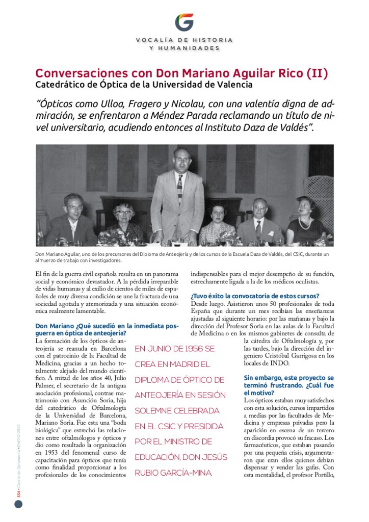 “Ópticos como Ulloa, Fragero y Nicolau, con una valentía digna de admiración, se enfrentaron a Méndez Parada reclamando un título de nivel universitario, acudiendo entonces al Instituto Daza de Valdés”.